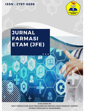 Jurnal Farmasi Etam diterbitkan oleh Unit Penelitian dan Pengabdian Kepada Masyarakat (UPPM) STIKES Dirgahayu Samarinda, yang terbit setahun dua kali pada bulan Juni dan Desember yang memuat hasil penelitian dengan ruang lingkup; ruang lingkup; Teknologi Farmasi, Preformulasi dan Formulasi, Biofarmasi, Farmakokinetika, Farmakodinamika, Farmakogenetika, Farmasi Analisis, Penemuan dan Pengembangan Obat / Eksipien, Kimia Bahan Alam, Obat Tradisional, Farmakognosi dan Fitokimia, Mikrobiologi dan Bioteknologi, Farmakologi dan Toksikologi, Farmasi Komunitas dan Klinis, Farmasi Sosial dan Administrasi, Pharmaceutical Care.